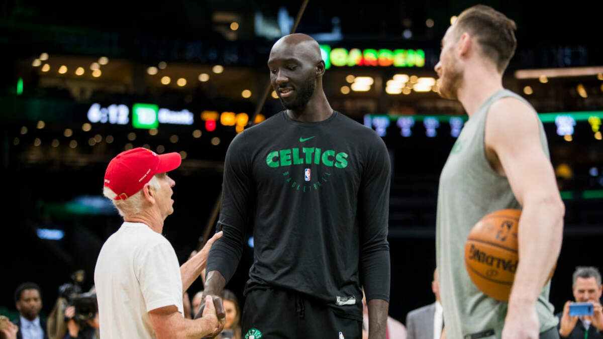 In the video, the Celtics' newest center stands next to a shower head that only reaches his chest, doorways that he has to duck under, and finally getting into a car, which he says is like driving a go-kart.